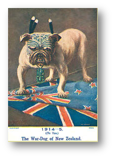 .. and because we teach Kiwi culture and explore subjects such as moko (facial tattoo), beauty, war and nationalism, we’d like to know more about Ceasar the NZ war dog. We know that dogs were used to rescue wounded soldiers from ‘No- Man’s-Land at the Battle of the Somme during the First World War, but we’re not sure about the origins of this ‘British Bulldog’ depicted with a moko and a hei tiki on the collar.